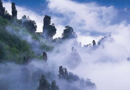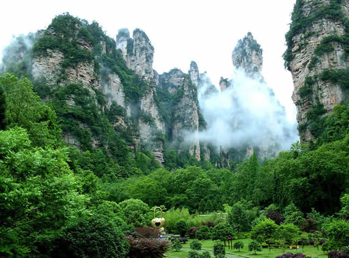 下 午: 中餐后游玩世界自然遺產(chǎn)的核心---袁家界景區(qū)(包含電影《阿凡達(dá)》中“哈利路亞山”原型“乾坤柱”、天下第一橋、九天玄梯、乾坤柱、連心橋、中韓友誼亭、神龜問天、迷魂臺等景點) 。袁家界,是張家界森林公園山頂觀景最為奇特壯觀景區(qū)之一,勝于黃石寨和天子山景區(qū)…之后便乘坐大約20分鐘的環(huán)保車可到大觀臺住宿地。