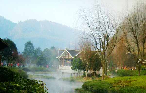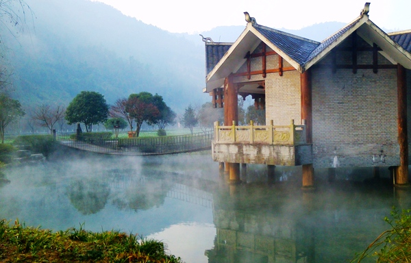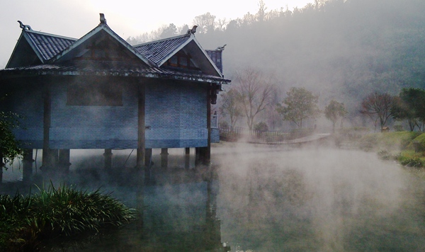 “泉源沸涌,浩氣云浮!睋(jù)了解,黃龍洞生態(tài)廣場(chǎng)的水源出自于洞內(nèi)的地下河,水溫常年保持在16攝氏度左右。當(dāng)從洞內(nèi)流淌出來(lái)的溫暖水流與洞外的低溫空氣相遇之后,頓時(shí)形成沸騰的水汽,從而形成“浩氣”景觀。